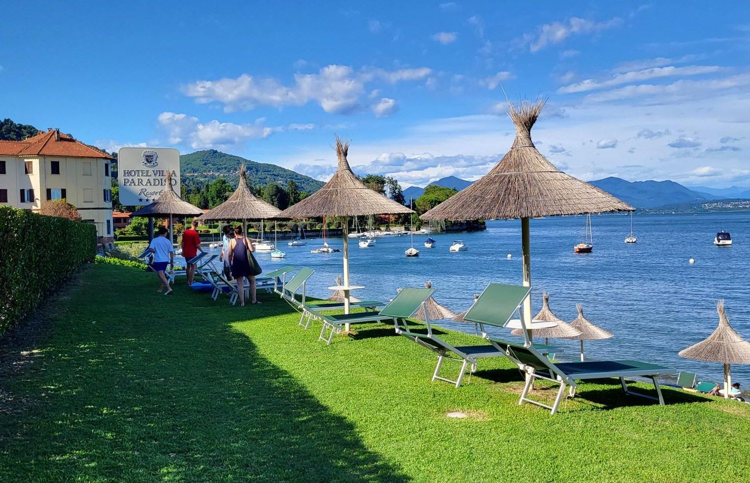 The hotel has its own private beach for our exclusive enjoyment with spectacular views of Lago Maggiore and the mountains. There is also a swimming pool on the hotel grounds.